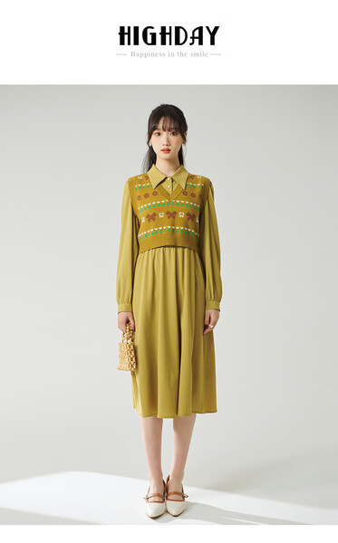 商品名称:HIGH DAY法式衬衫连衣裙女2025春秋冬新款收腰显瘦秋装搭配一整套高档裙 LQ02AE31163浅绿连衣裙 L